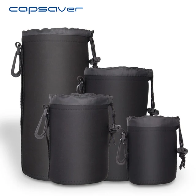 Special Offers capsaver 4pcs/lot High Quality Neoprene Camera Lens Pouch Set Thick Protective Soft Pouches Bag Case for Canon Nikon Sony