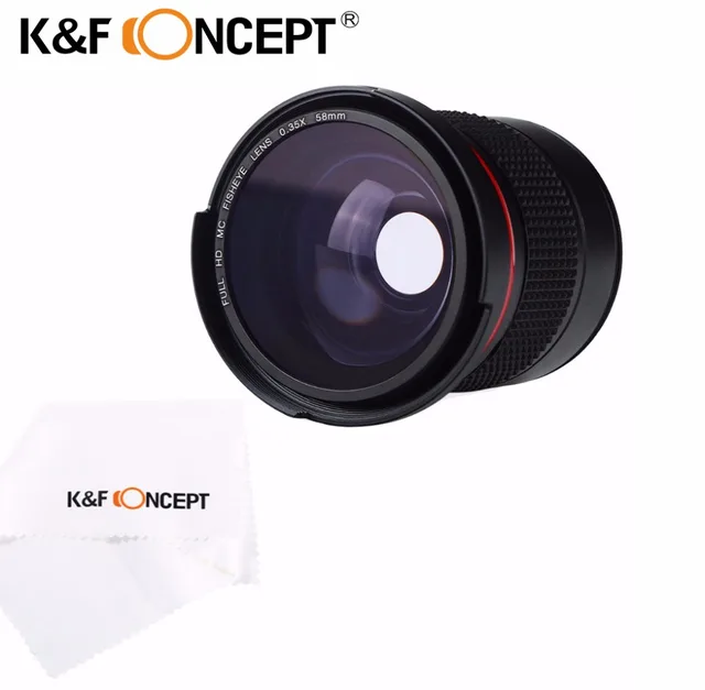 Best Price K&F CONCEPT 58mm 0.35X Ultra Clear Blue Film Coated Fisheye Fish Eye Lens + Cleaning Cloth for Canon for Nikon Cameras
